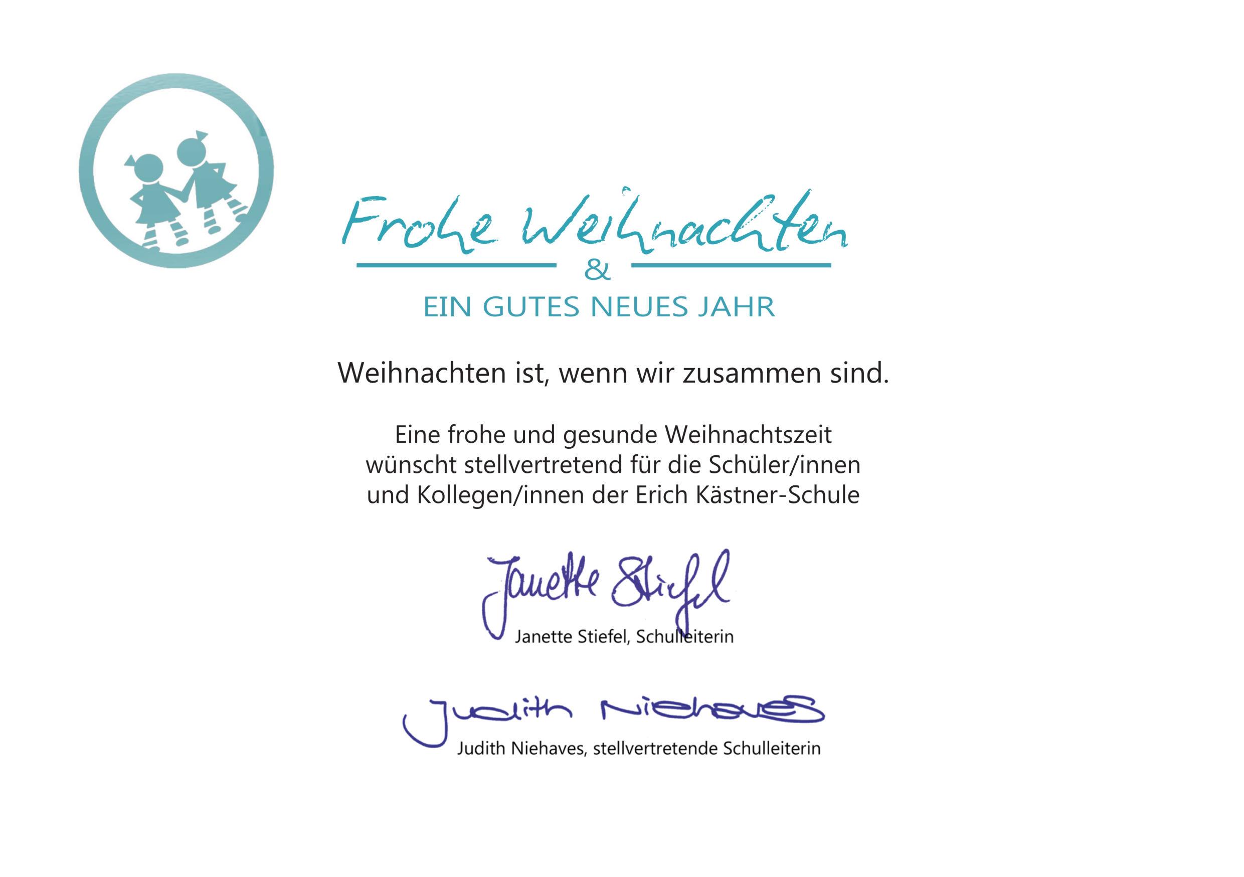 Wir freuen uns auf eine besinnliche Adventszeit und wünschen allen Schülern sowie ihren Familien ein frohes Fest und einen guten Rutsch ins neue Jahr.