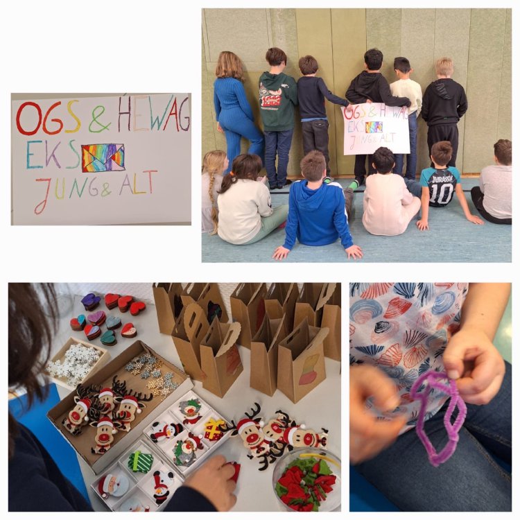 In der OGS wurde fleißig gebastelt, gemalt und Tütchen gepackt, denn die Kinder wollten älteren Menschen eine kleine Freude bereiten. Dann kam den Erwachsenen noch die Idee, eine Brieffreundschaft daraus entstehen zu lassen. Ein Seniorenstift in Duisburg ist dazu bereit. Gestern wurden die gebastelten Tüten, samt Plakat überreicht, so dass sie pünktlich zu Weihnachten da sind.